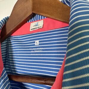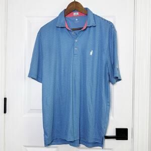 Johnnie O Hanging Out‎ Size L Blue White Stripe Marlin Polo