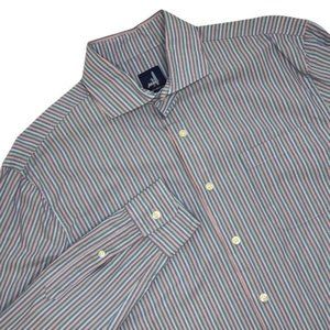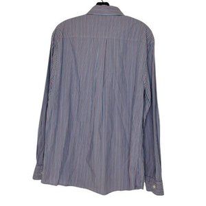 Johnnie O Mens Medium Button Down Long Sleeve Shirt Vertical Striped Blue/Pink