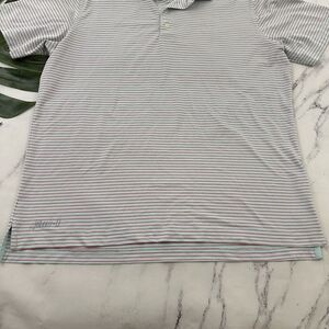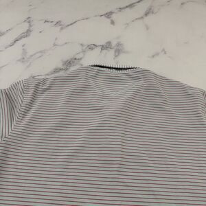 Johnnie-O men's light blue and red striped Hoover polo shirt, size L. It is free from any rips or stains. It measures about 25 inches across the chest and is about 29 inches long.