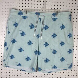 Johnnie O Swim Trunks Suit Men's XXL Hatton Blue Fish NWT $89 Retail READ Pocket