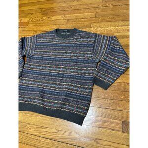Johnnie Walker Mens 100% Cashmere Sweater Sz Large Gray Purple Striped Retro