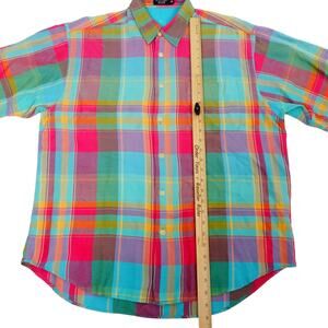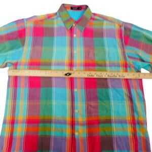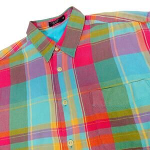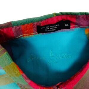 Johnnie Walker Silk Blend Colorful Plaid Embroidered Button Up Shirt XL