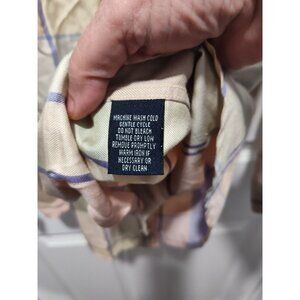 The Johnnie Walker Silk Blend Plaid Button-Down Shirt in men's size small is a luxurious and lightweight addition to any casual wardrobe. Made from a combination of silk and Tencel, this woven shirt features a classic collared neckline with button-down style accents. The beige color and plaid pattern add a touch of sophistication, making it a versatile piece that can be worn for various occasions. Ideal for a regular fit and featuring a breathable fabric, this shirt from the renowned Johnnie Walker brand is a stylish and comfortable choice for everyday wear.