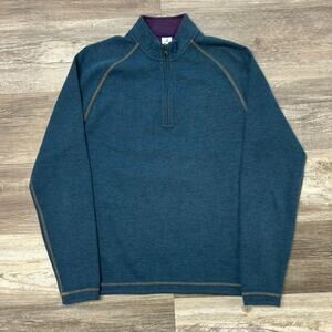 Johnnie-O Blue Purple Mens M 1/4 Zip Blue Black Mock Neck Reversible Sweater