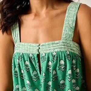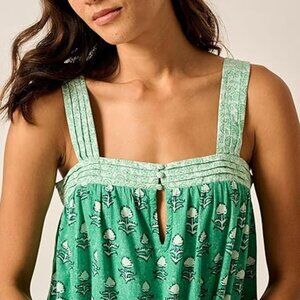 Johnnie-O Elin Contrast Block Print Tank Top in Ming Green Square Neck Breezy