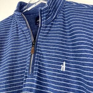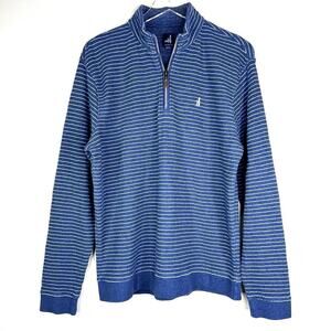 Johnnie-O Emmett Half Zip Sweatshirt Pullover Marlin Blue White Striped Knit Lg
