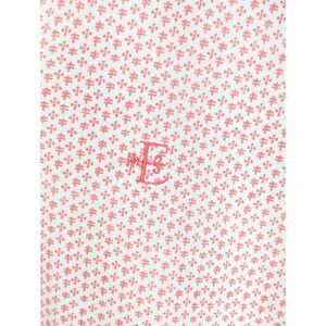 White with a Geometric Pint in the Color "Tango" Which is a Coral Pink/Orange Color