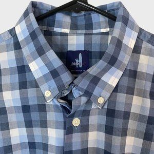 Johnnie-O Hangin' Out Button-Down Shirt Blue Check Cotton Casual Long Sleeve