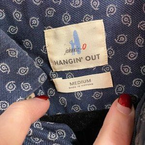 Johnnie-O Hangin Out Dixon button-down shirt in a Paisley print is perfect for any casual outing. Short sleeves and in Wake (blue) color make this shirt a must-have for every man's wardrobe. Men's size medium. Good condition. Measurements in pictures