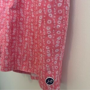 Dive into style with the johnnie-O Pink Swim Trunks, featuring a vibrant geometric pattern that stands out. These lightweight trunks offer a comfortable fit with a drawstring waist, perfect for a day at the pool or beach.