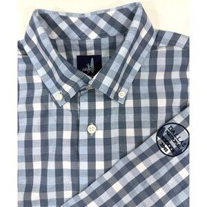 Johnnie-O Mens Performance Shirt Sz Medium Dallas National Golf Club Blue Plaid