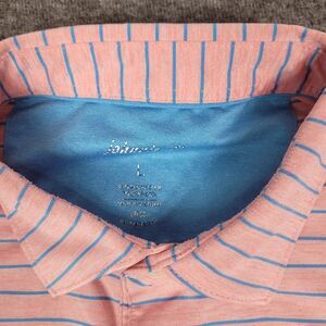 Johnnie-O Men's Golf Polo Shirt Size L Pink Blue Striped Performance Good Condition See Pictures For More Details.