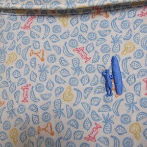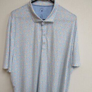 Johnnie-O UPF 50 sun protection multicolor cocktail glass/fruit AOP lightweight short-sleeve golf polo shirt. Size 2XL. 28" armpit to armpit and 33.5" top of collar to bottom of hem. Very nice condition. 4802