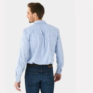 Johnnie-O Performance Button Down Shirt Large Baby Blue Plaid Preppy Career
