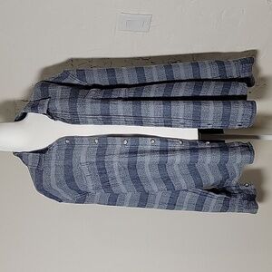 Johnnie-O Teton Shacket Shirt Stripe Button Down Collared Long Sleeve Pockets XL