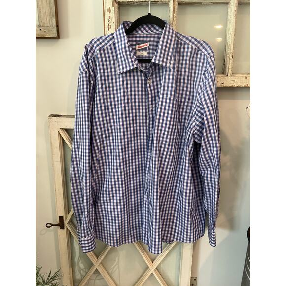 Johnnie-O size XXL plaid button down shirt in purple, blue and white. Measures 28” from armpit to armpit and 30” long.