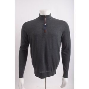Johnnie O Mens Sweater Size S Charcoal Gray Half Zip Pullover NWT. 75% merino wool/25% lyocell. High neck with half zip. Very soft fabric.