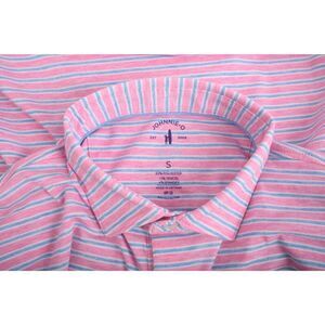 Johnnie-O Mens Polo Shirt Carlos Top shelf Size S Blue Pink Taffy Striped NWT