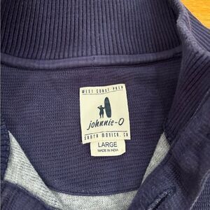 Johnnie-O navy 3 button sweater/sweatshirt. Embroidered logo. 100% cotton. Armpit to armpit 24 inches. Length 27 inches. Size large. Good condition.