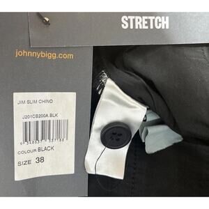Johnny Bigg Mens Size 38x32 Black Slim Fit Stretch Chino Pants Zip Fly NWT