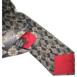 Johnny Carson - Men's Tie - Floral Paisley All Over Design -Black Gray Tan -Silk