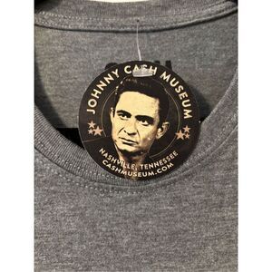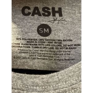 Johnny Cash American Rebel Small t-shirt grey red blue poly cotton rayon soft.