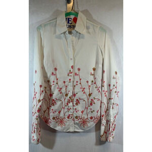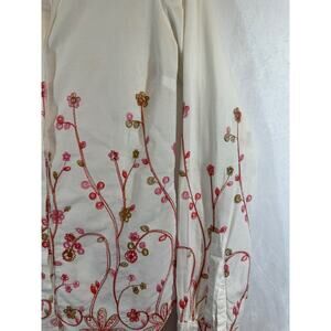 Johnny Cotton Womens Shirt S Button Up Colorful Embroidered White Floral LS D25