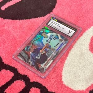 This is the 1994 Bowman’s Best [Refractor] #96 featuring Johnny Damon & Ken Griffey Jr., graded CSG 7 Near Mint. A mid-90s dual-player refractor insert showcasing Griffey and Damon with vibrant color, sharp edges, and classic Bowman’s Best foil finish. Perfect for Mariners and Red Sox collectors, hobbyists, and fans of iconic ’90s refractor cards. Card and slab shown exactly as pictured—please review photos for condition.