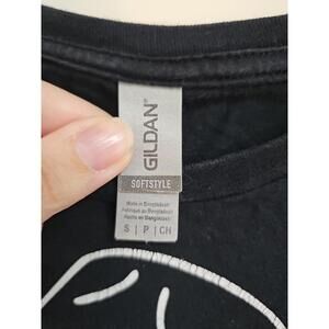 The Johnny Depp Happy Hour t-shirt is a unisex adults' regular fit shirt made by Gildan. Featuring a black color and showcasing a happy character design, this t-shirt is perfect for those looking to add a touch of fun and stylish flair to their wardrobe. Available in size small, this shirt is sure to make a statement whether you're heading out for a casual day or a night on the town.