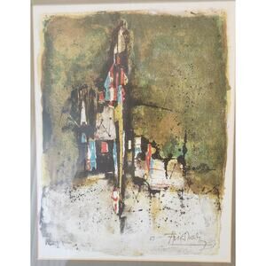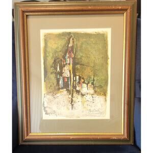 Johnny Friedlaender Signed Abstract Lithograph Mid-Century Mod. Art 17x14 Framed