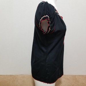 Johnny J. top Medium floral embroidered peasant tassel tie neck boho hippie