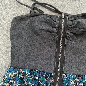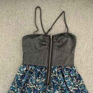 Johnny Martin Dress Spaghetti Straps Zipper Front Gray Teal Blue Small Stretch