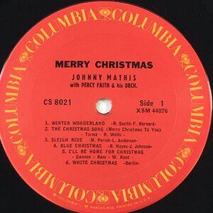 Johnny Mathis "Merry Christmas" Vinyl Record 12 Songs Stereo Columbia CS 8021