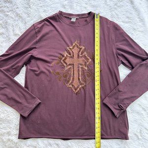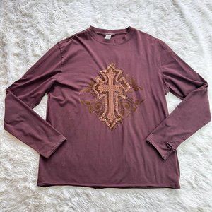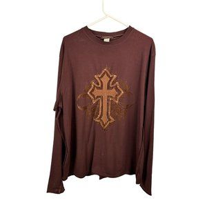 Johnny Max Mens Shirt Size Large Long Sleeve Christian Cross Faith Embroidered