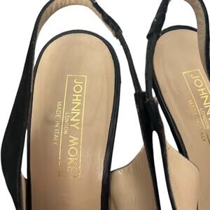 Johnny Moke London Slingback Pump 3.5" Heel Women's 39/9 Suede Cap Toe Classic. Features: Suede upper with leather pointed cap toe, elastic slingback strap, leather sole. Excellent condition. Made in Italy. Fast shipping.