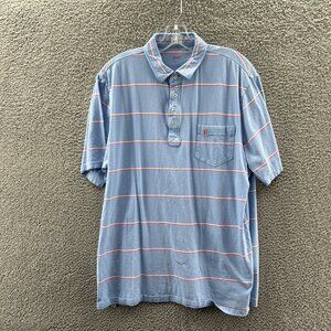 Johnny O Hanging Out Polo Shirt Mens XL Short Sleeve Blue Striped Pullover