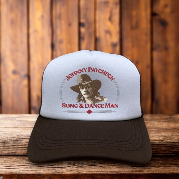 Johnny Paycheck Song & Dance Man Mens Trucker Hat Brown Snapback Outlaw Country