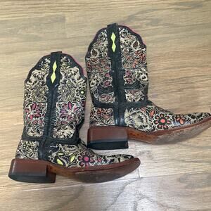 Ladies Johnny Ringo Black / Multicolor Inlay Square Toe Cowgirl Boots Size 7