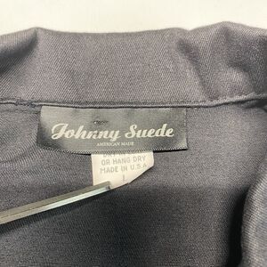 Johnny Suede Button Up Short Sleeve Shirt Mens Large Black Embroidered Motorcycle Thick Nice Shirt. Made In USA EUC Casual Moto Biker Hotrod Rockabilly