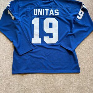 Johnny Unitas #19 Colts Long Sleeve Jersey. 1970 Throwback Authentics , Mitchell & Ness. Men's Size 54. Blue & White. Like new condition., no flaws.