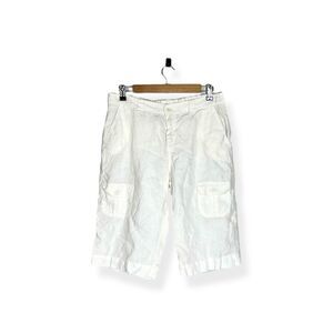 Johnny Was 100% Linen White Women's Cargo Roll Tab Adjustable Length Shorts