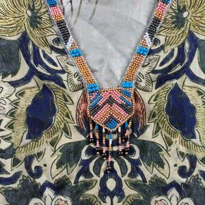 Johnny Was 100% Silk Kimono Poncho Kaftan Luxury Beaded Boho Artsy OSFA F164