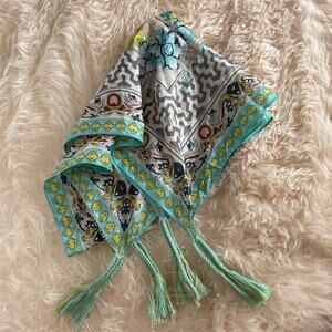 Johnny Was 100% Silk Tassel Scarf | 42” Square Boho Floral Wrap, Very Rare Print