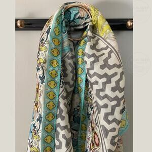 Elevate any look with this stunning Johnny Was silk square scarf, featuring a vibrant mixed print and signature tassels. Crafted from 100% silk, this lightweight wrap drapes beautifully as a headscarf, necktie, or belt. Generous 42” x 42” size makes it endlessly versatile.