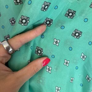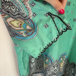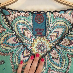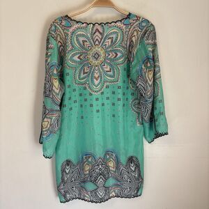 Johnny Was 100% Silk V-Neck Tunic Green Tunic Top S Embroidered Art to Wear DESC