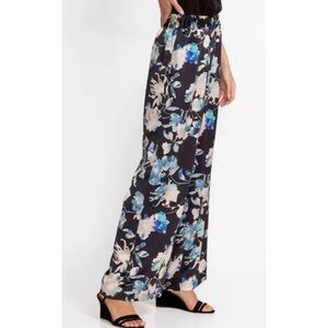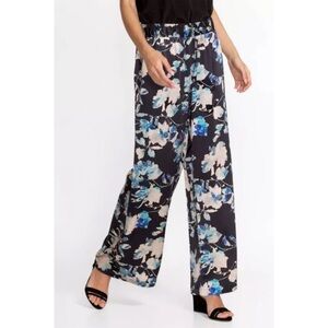 Displaying soft floral bouquets on a deep backdrop, these Chryssy Charmeuse Wide Leg Pants offer the comfort of lounge wear in a luxe polished silhouette.