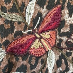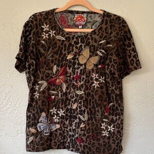 Johnny Was 100% cotton Embroidered Butterfly Leopard Print t shirt M