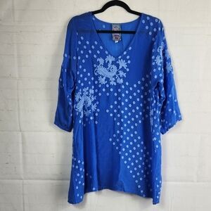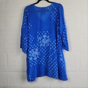 Johnny Was 3/4 Sleeve Rion Soleil Embroidered Polka Dot Lagenlook Tunic Blue M