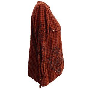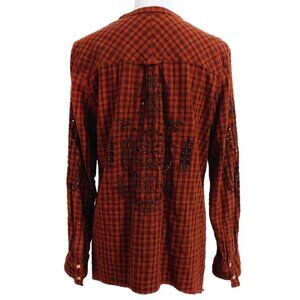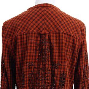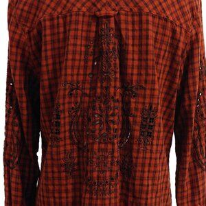 Johnny Was 3J Workshop Brown Checked Half-Button Shirt Eyelet/Peek a Boo Detail