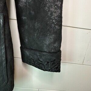 Johnny Was 3J Workshop Coated Velvet Embroidered Floral Studded Jacket Black XS